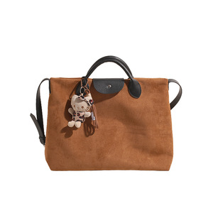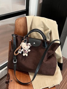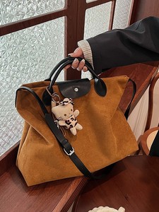 跨境磨砂麂皮绒手提大容量包包女2025新款复古托特包斜挎通勤包