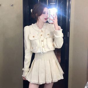 小香风套装裙两件套秋冬新款法式气质名媛短款外套+半身裙两件套