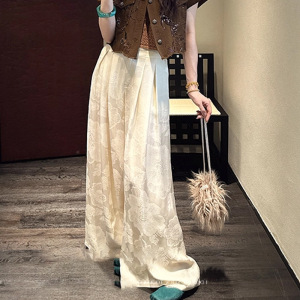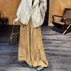【宋至】人丝织金提花双面缎垂垂裤2025秋季新款休闲百搭裤子
