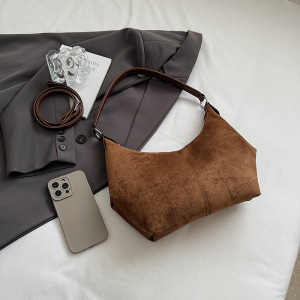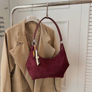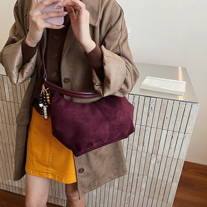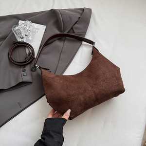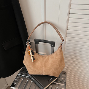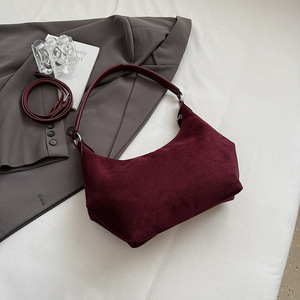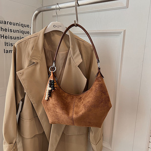 跨境2025秋冬复古饺子包简约绒面手提包休闲时尚百搭单肩腋下女包