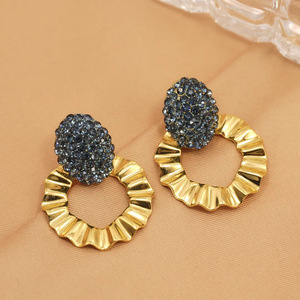 新款爆款复古金色纹理几何圆环耳环女轻奢高级感欧美时尚百搭耳钉