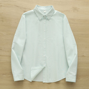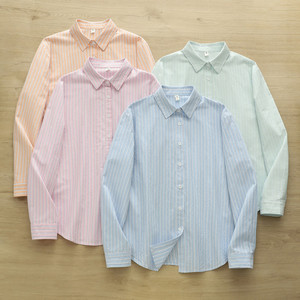 韩版新款 条纹印花棉质女士开衫长袖衬衫批发潮
