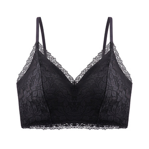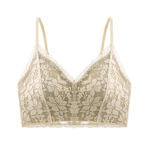 6098蕾丝V领法式三角杯纯欲风吊带背心轻薄透气舒适无痕美背内衣