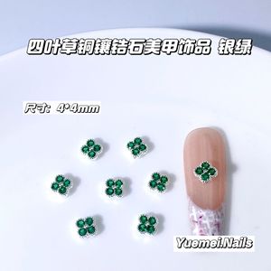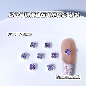 轻奢爆闪幸运四叶草铜镶白锆彩锆石小号美甲饰品立体指甲装饰品