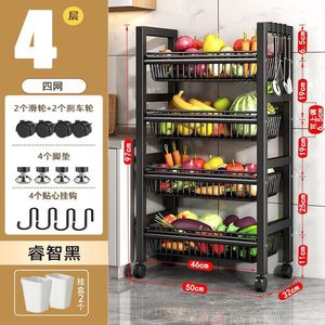 厨房置物架落地多层家用微波炉架子蔬菜收纳架烤箱架储物架带轮子
