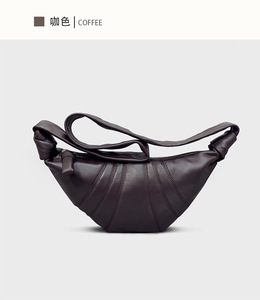 法国小众头层小羊皮可颂包斜跨慵懒感牛角包真皮单肩斜跨饺子包女