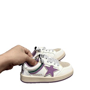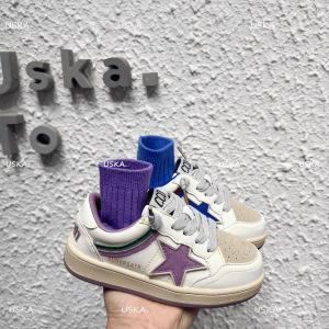 星星滑板鞋JBM兄妹款蓝紫色儿童脏脏板鞋拼接皮魔术贴软底休闲鞋