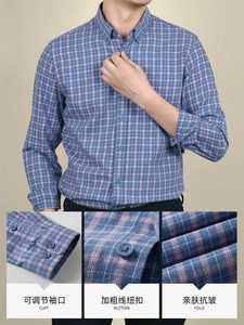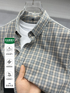 天丝莱塞尔棉衬衫男士休闲格纹青中年高级感纽扣领外穿男士衬衣