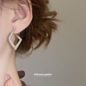 欧美跨境几何菱形吊坠耳扣时尚简约百搭气质耳环小众设计感耳饰女