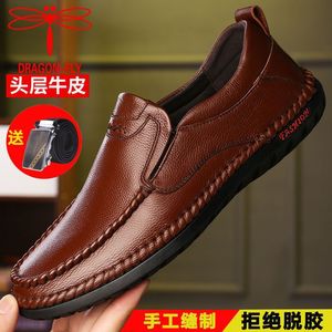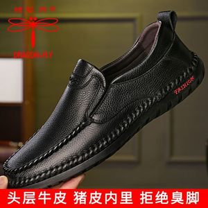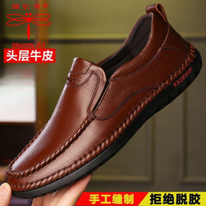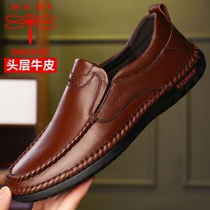 【头层牛皮】蜻蜓牌真皮男鞋休闲皮鞋男士套脚透气软皮软底爸爸鞋