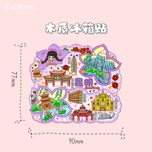 厂家现货创意朋友圈金属木质昆明冰箱贴地标建筑景区特色纪念礼品
