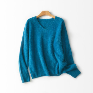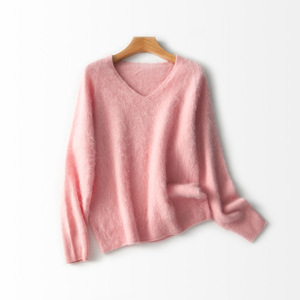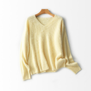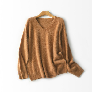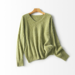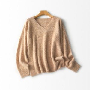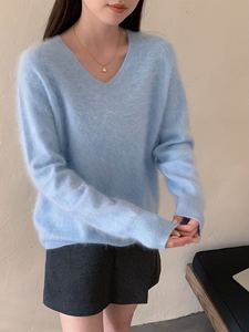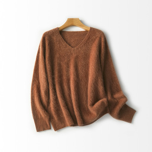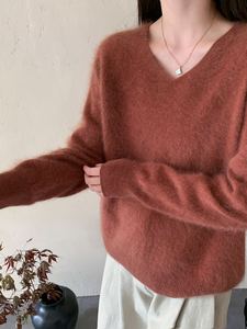 【云感拉绒】慵懒羊绒羊毛拉毛V领针织衫一体成型无缝外套女秋冬