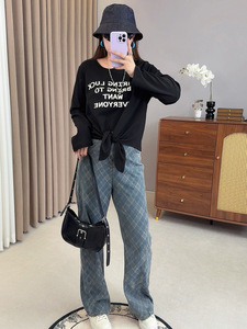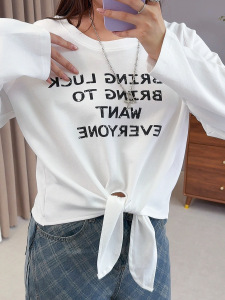 爱元2025秋季新款大码女装胖mm设计感字母印花长袖T恤W-232