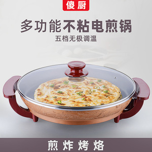 傻厨电煎锅正品特大号平底不粘锅烤肉锅多功能电饼铛家用烙饼烙馍