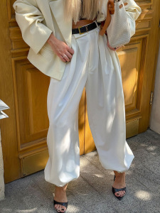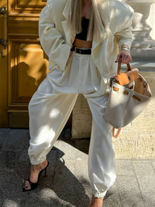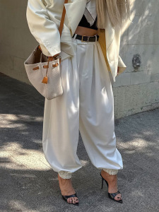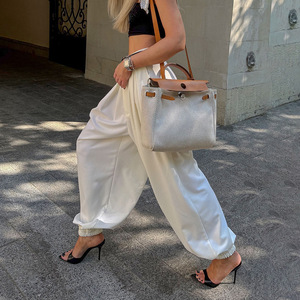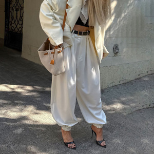 秋冬新款宽松纯色缎面色丁束脚长裤女设计感气质时尚2025跨境通勤