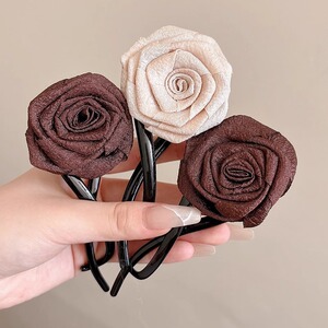 2025新款干枯玫瑰新中式盘发扭扭夹女后脑勺一字抓夹发饰头饰