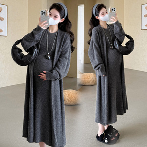孕妇套装2025秋冬新款时尚网红款慵懒风简约气质辣妈中长款两件套