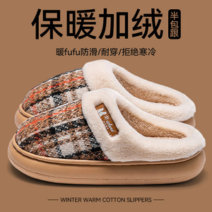 月子棉拖鞋女2025新款秋冬季室内家居厚底保暖毛毛绒情侣棉拖男士