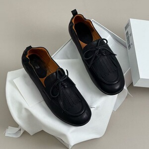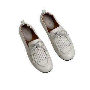 纯原高端胎牛皮复古流苏系带单鞋一脚蹬蝴蝶结平底乐福鞋小皮鞋女