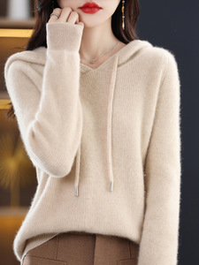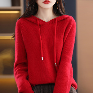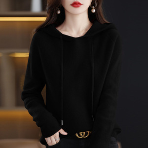 帽衫慵懒风连帽外套女秋冬季新款加厚长袖针织卫衣宽松百搭毛衣