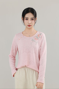 2025秋冬圆领纯色长袖针织打底肩花刺绣纯色宽松女士浮雕纹毛衣