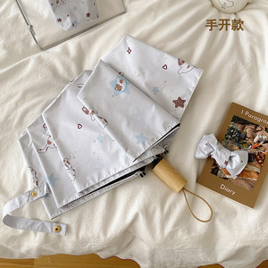 新款星星小猫折叠雨伞防晒防紫外线黑胶遮阳伞自动晴雨两用太阳伞