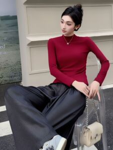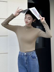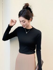 半高领针织衫女长袖洋气百搭显瘦宽松立领打底小衫黑色西装内搭女