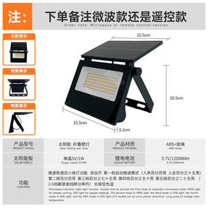 跨境太阳能庭院壁灯户外照明花园led可折叠人体感应投光灯智能