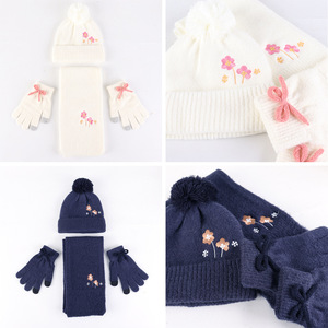 2025年冬季新款儿童帽子手套围巾套装 出游保暖针织三件套宝宝批