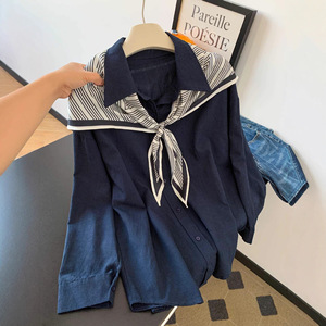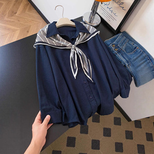 广州十三行高货爆款~新时尚翻领衬衫配披肩宽松显瘦百搭休闲上衣