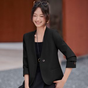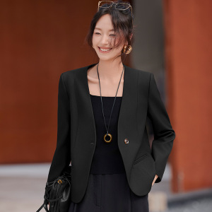 无领西装外套女2025新款春秋职业气质休闲小个子短款高级西服上衣