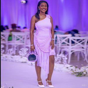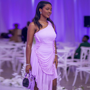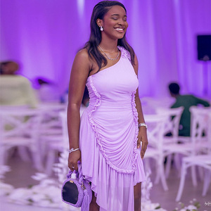 现货 欧美跨境女装2025秋季新款时尚优雅单肩荷叶边褶皱连衣裙