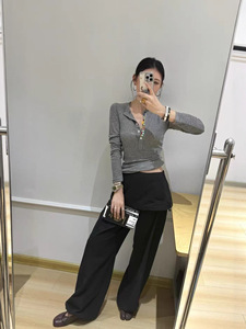 2025早秋新款 假两件显瘦袋鼠裤抽绳运动阔腿裙裤工装裤长裤