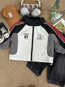 杉伴韩系男小童秋季新款拼接史努比连帽运动上衣宽松款冲锋衣外套