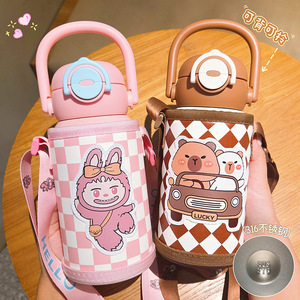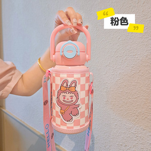 拉布布水杯儿童保温杯女孩上学专用吸管杯子2025新款学生双饮水壶