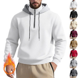 跨境亚马逊冬季重磅加绒男士宽松连帽立领休闲运动潮流长袖卫衣男