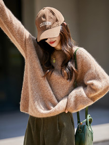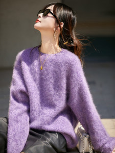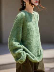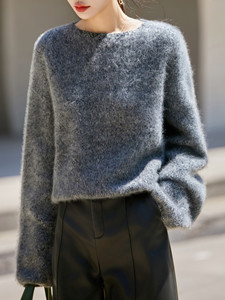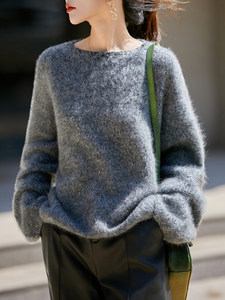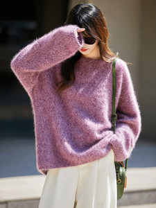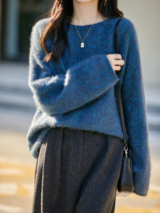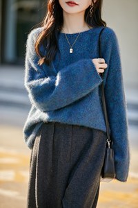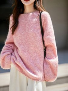 秋冬新款无缝一体七针加厚花纱拉绒毛衣女士圆领羊绒羊毛混纺衫
