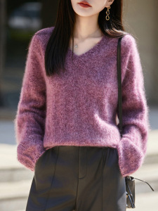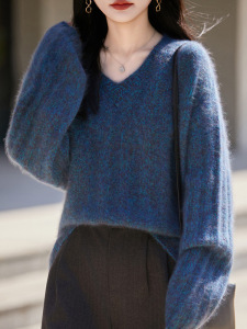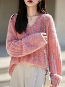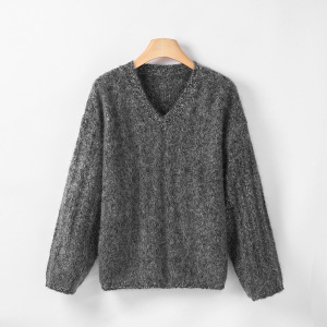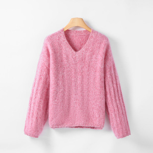 25新款羊毛衫V领拉毛濮院毛衫厂针织毛衣女慵懒