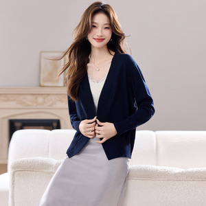 秋季防晒薄款V领针织开衫女2025新款裙子外搭披肩含桑蚕丝小外套