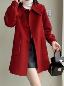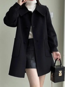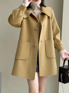2025秋冬新款中长款爱心扣显瘦毛呢外套显瘦减龄娃娃领呢子上衣女