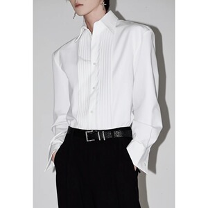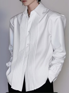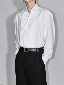 白色法式褶皱衬衫男款长袖cleanfit宫廷风高级设计感简约内搭衬衣