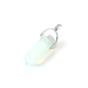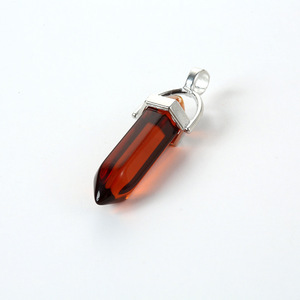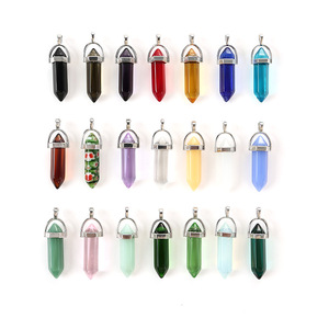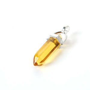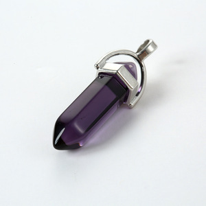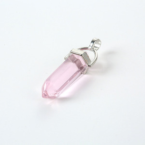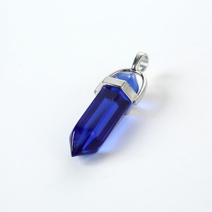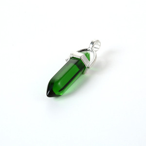 跨境亚马逊六角形吊坠人造水晶子弹尖头灵摆玻璃项链饰品项坠宝石