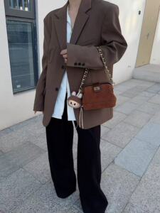 美拉德包包女2025新款时尚百搭单肩包高级感麂皮绒菱格斜挎医生包