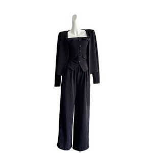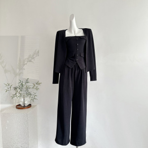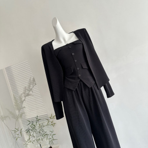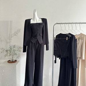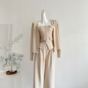 2025秋季新款韩系气质休闲针织开衫修身抹胸背心高腰阔腿裤三件套