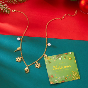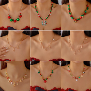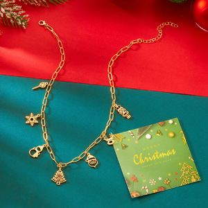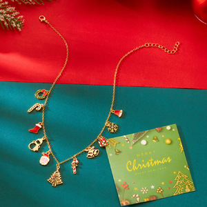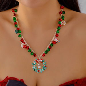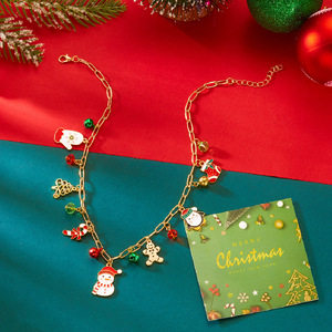 圣诞节日系列项链合金滴油圣诞元素多吊坠铃铛花环圣诞树项链饰品