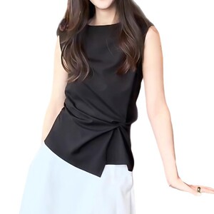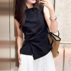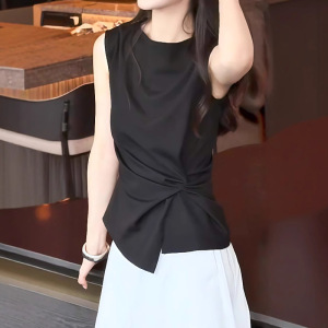 黑色气质不规则扭结设计感无袖上衣女夏季高级感褶皱修身显瘦衬衫