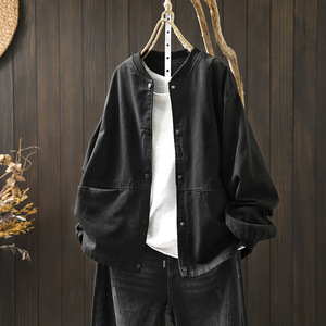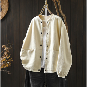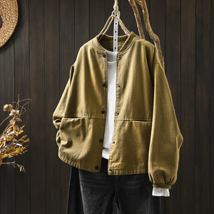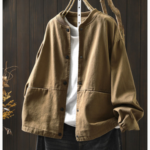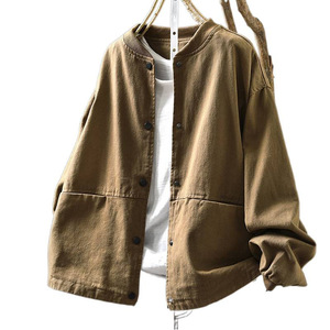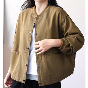 工装棒球服外套女短款宽松显瘦春秋装大码棉质立领双口袋外穿夹克