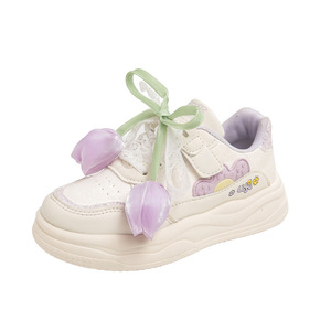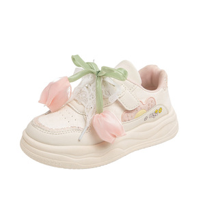 女童小白鞋郁金香时尚运动鞋2025新款秋季儿童休闲鞋软底女孩板鞋