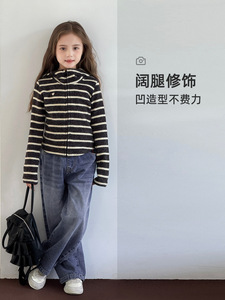 儿童裤子2025春秋百搭设计感简约酷帅廓形不软塌弯刀宽松软牛仔裤