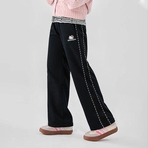 HelloKitty凯蒂猫女童秋季休闲裤2025新款卡绳拼接设计款儿童裤子